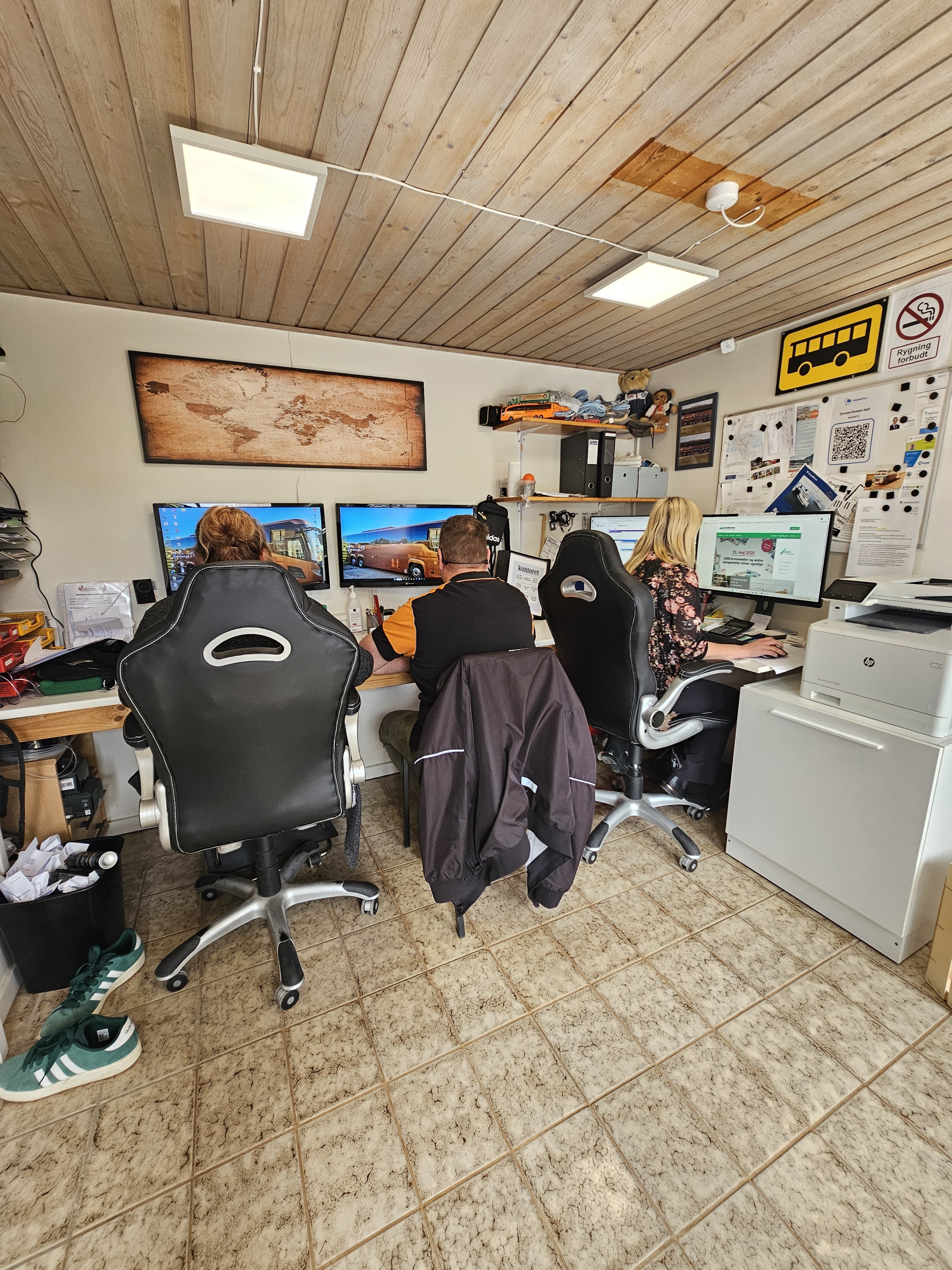 Med flere kvadratmeter og bedre indretning har vi nu alle tre fået vores eget skrivebord. Det giver et bedre arbejdsmiljø, mere overblik og ro i hverdagen. Derudover er der nu god plads, når chaufførerne kigger forbi for at få information eller bare en kop kaffe.